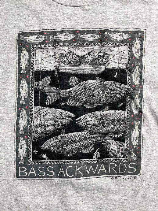 90’s Ray Troll Bass Ackwards Fish Tee - L